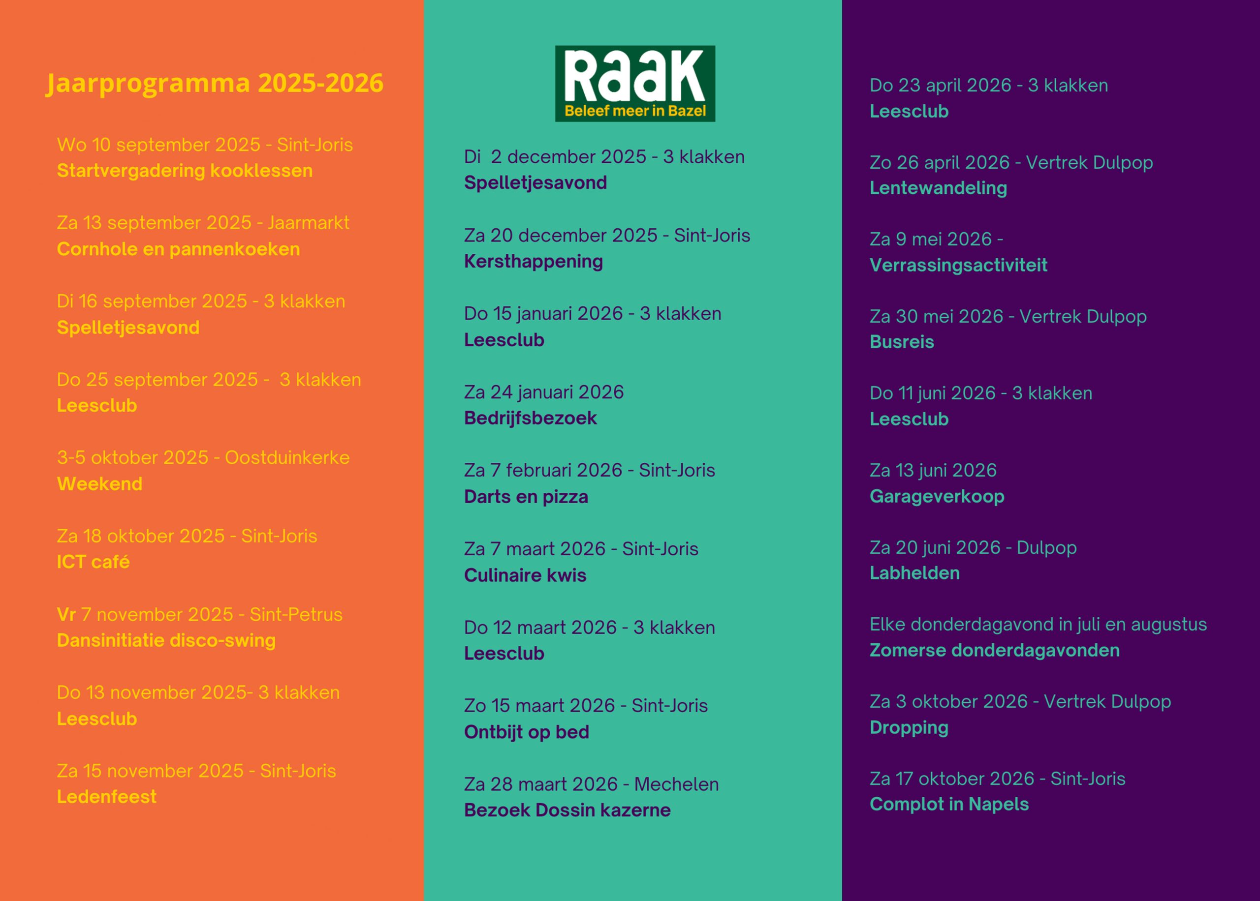 We proberen geregeld onze komende activiteiten en bijhorende info aan te vullen. Wees slim en snel en klik hier om onze Flyer met programma voor het lopende jaar te downloaden, zodat je direct alle activiteiten in jouw agenda kan zetten. Of beter nog …